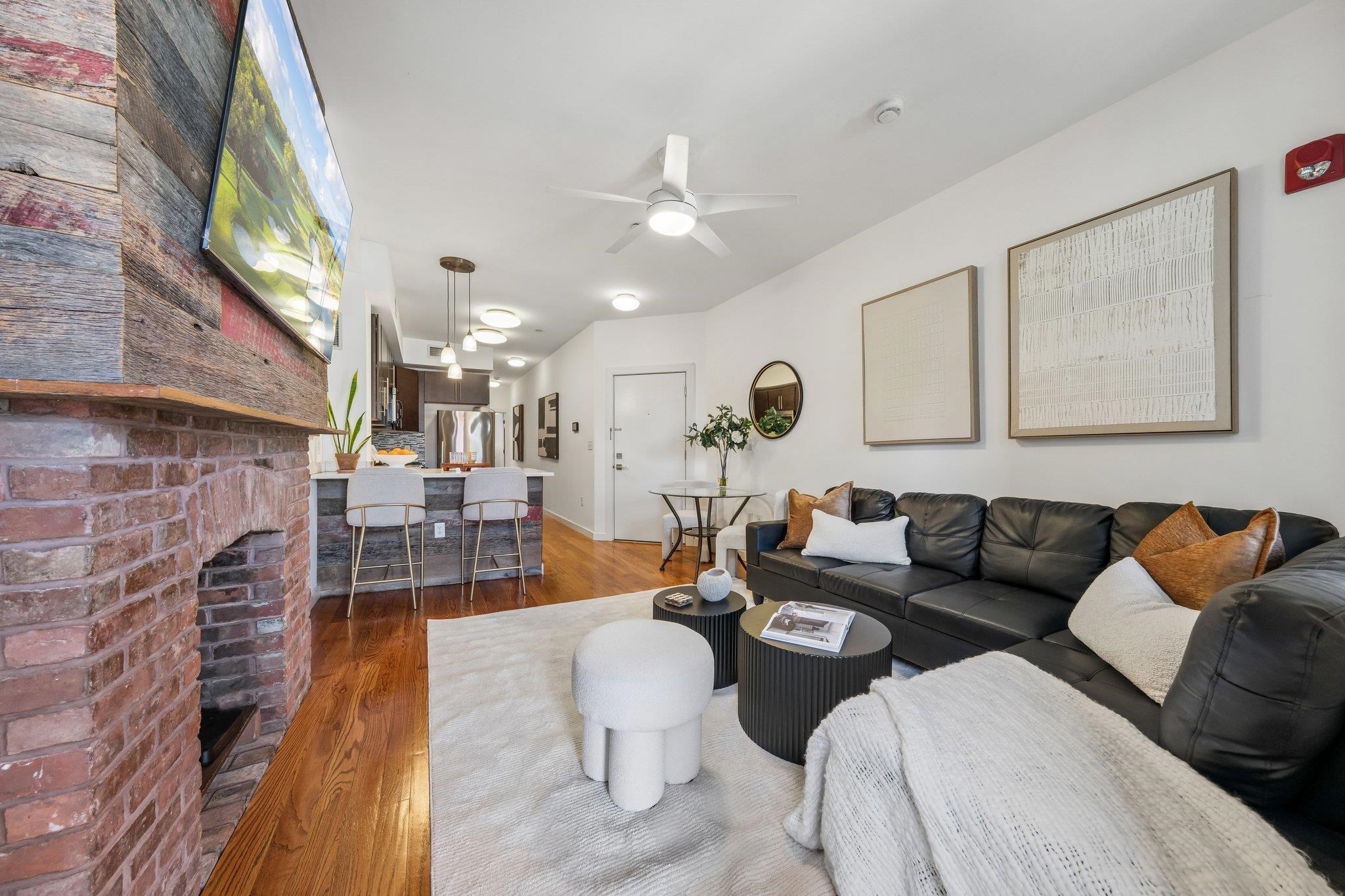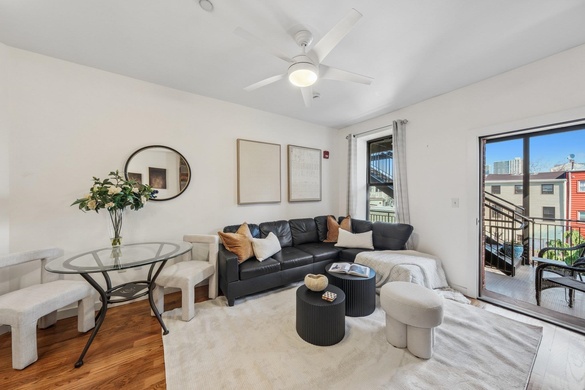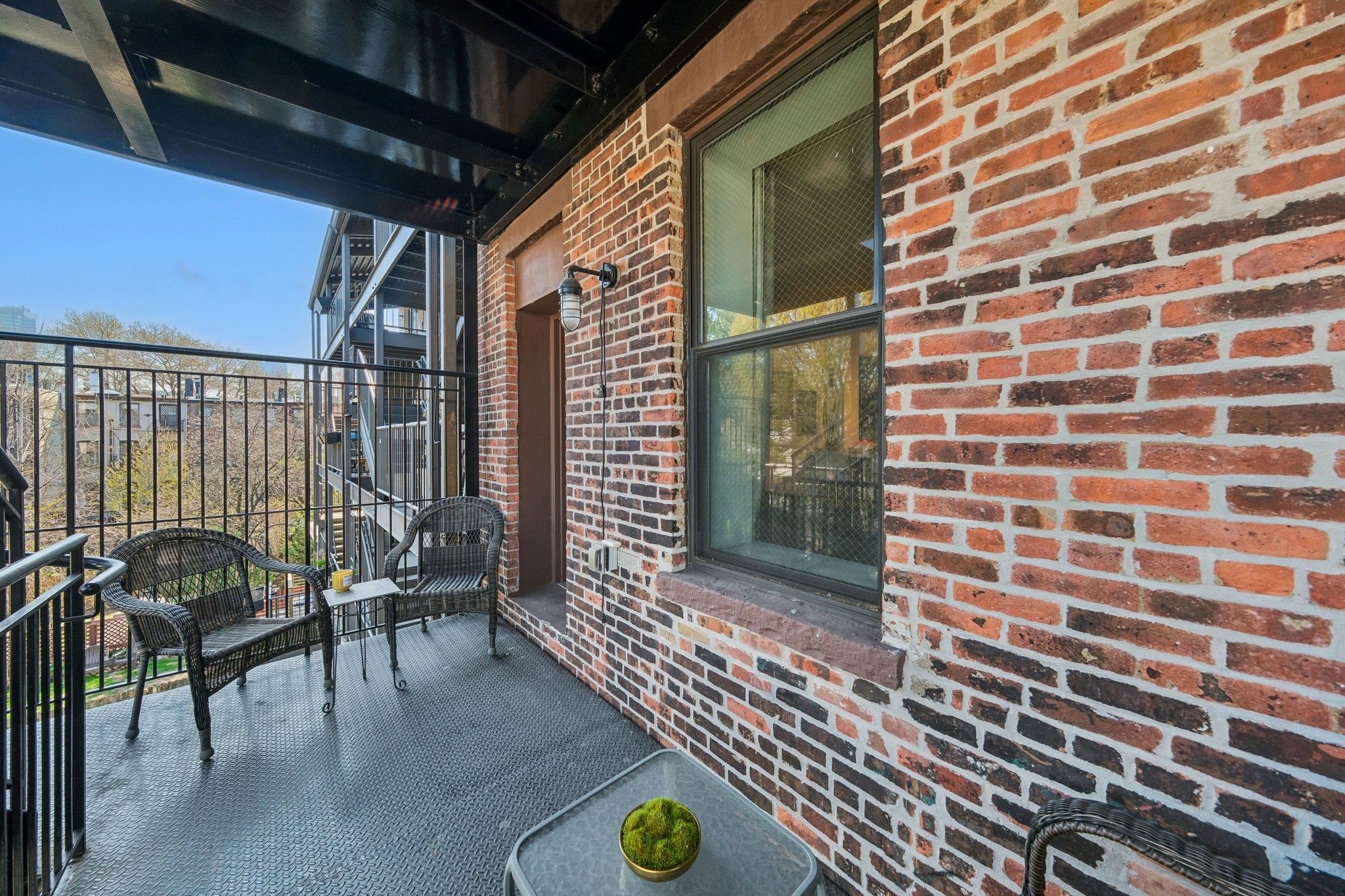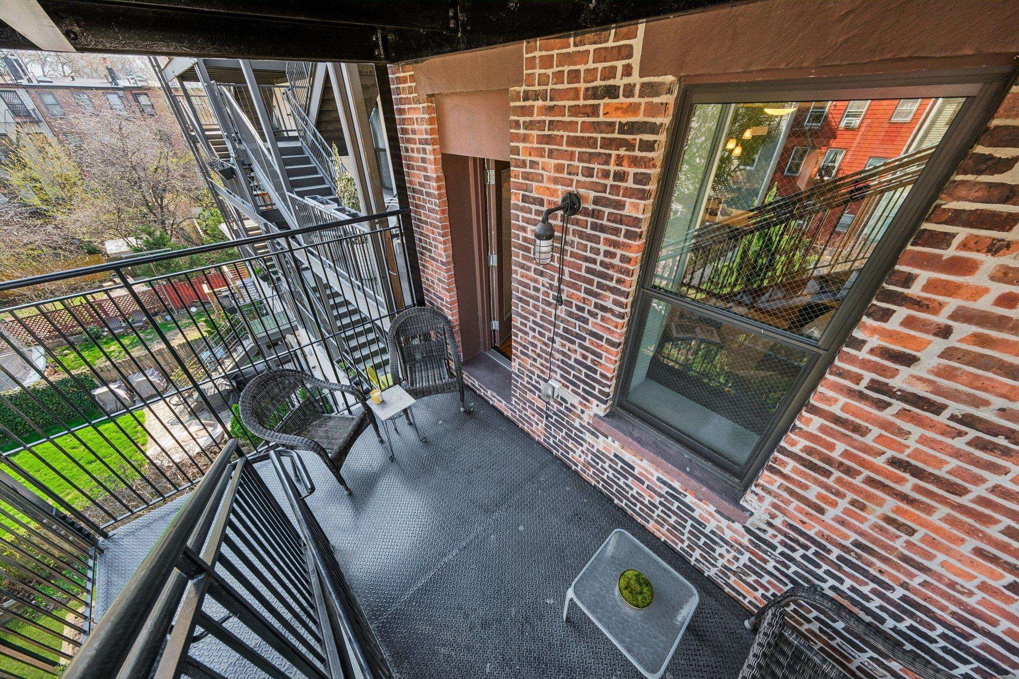 HAMILTON PARK 1 bedroom stunner with courtyard balcony! Located right outside of the park, this floor through home is in impeccable condition. Enter to gleaming hardwood floors, historic brick detail, and crisp, modern, finishes. A large living/dining area leads directly to your wide balcony overlooking quiet courtyard and treetop exposures. Chef's kitchen with stone countertops, abundant cabinetry, 2-seater breakfast bar, and s/s appliances. Spa bathroom with gleaming white subway tile, deep soaking tub, and pedestal sink. Your primary bedroom is king-sized with ample closet space and 2 large windows overlooking the notable embankment. Want more? An in-home laundry room and a storage area in the building is included! The phenomenal neighborhood has it all, easy PATH/transporation access, the stunning Park, Cangiano's, Milk Sugar Love, Chickie's, Rumba Cubana, Scram, and all the beloved shops, venues, and activities for endless enjoyment!